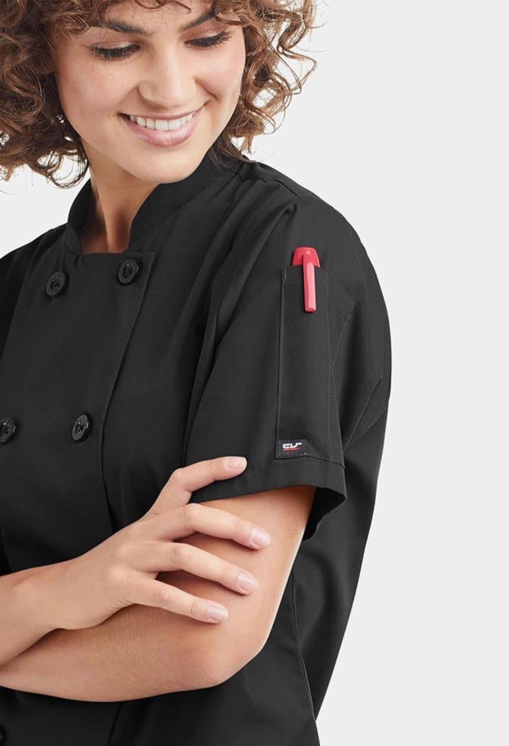 • Professional Kitchen Features For Working Chefs – Left sleeve pen pocket, quality reinforced buttons, proper length proportions for women, easy care wash-and-wear convenience