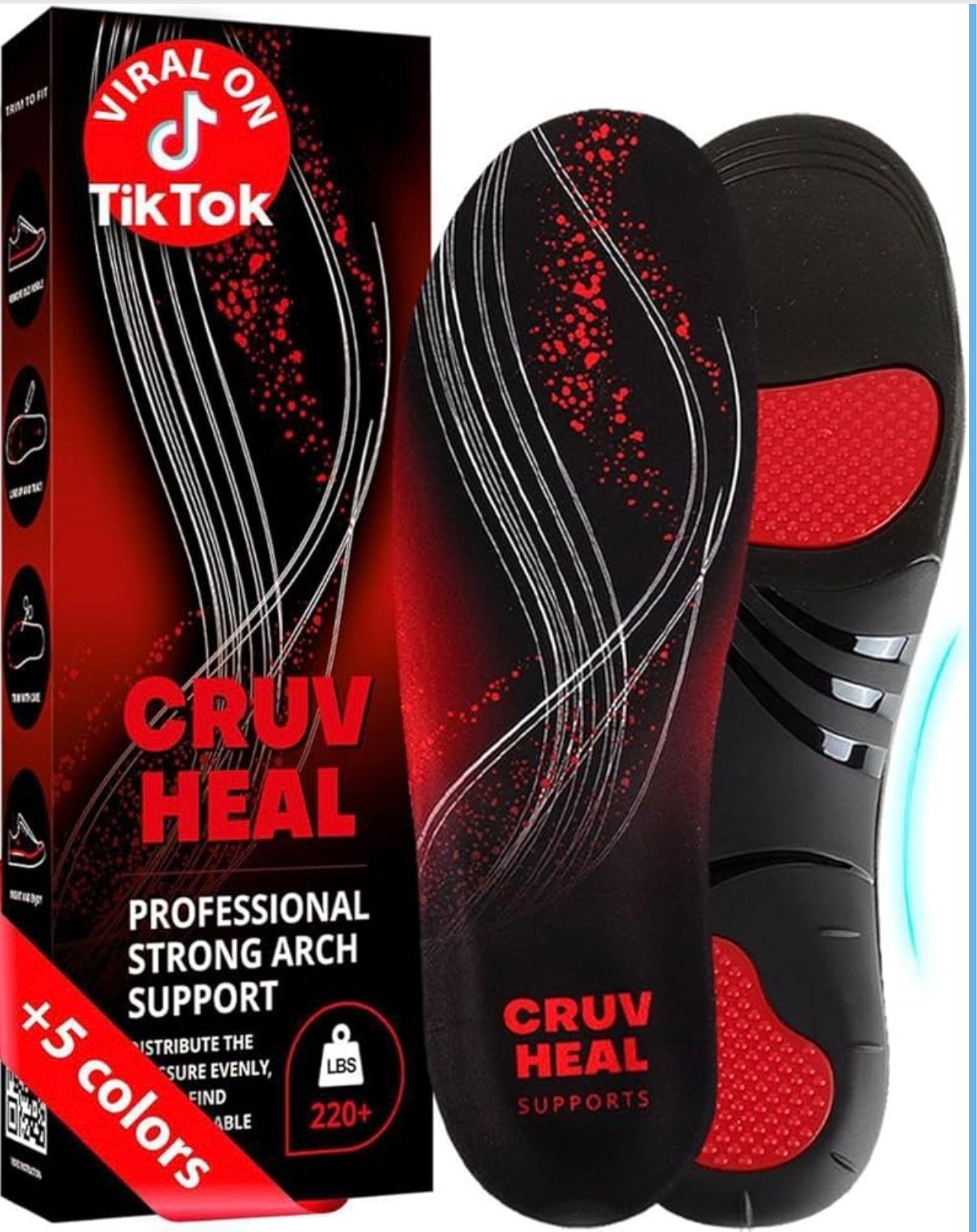 Accessories, ApparelCRUVHEAL 220+ lbs Plantar Fasciitis High Arch Support Insoles Men Women – Orthotic Shoe Inserts – Boot Work Shoe Insole (M, Black)