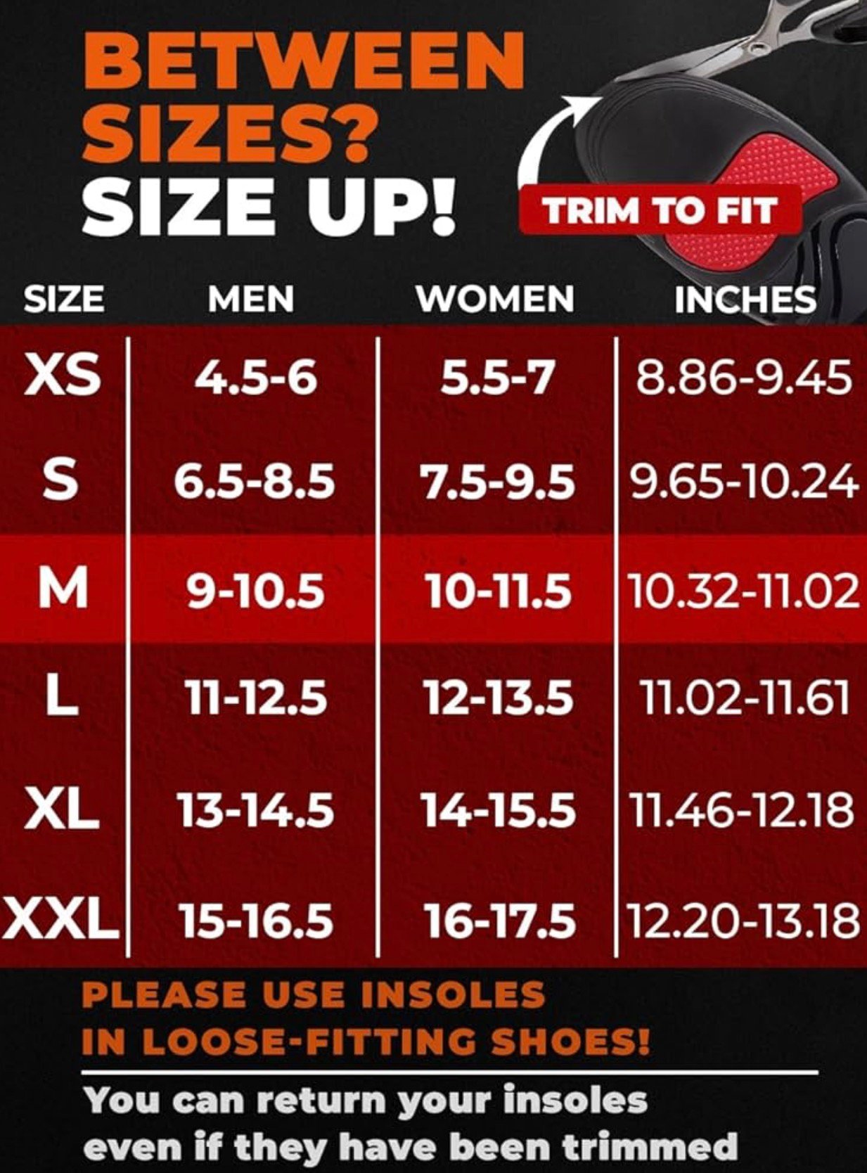 - Find the Good Fit: Select shoe insoles men and women by checking the shoe size chart for a proper fit. For a more accurate fit, please also verify the insole length