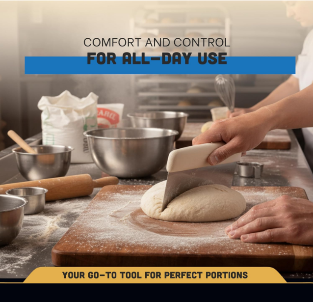 - Precision Carbon Steel Blade – Sharp and rigid 6″ x 3″ blade easily slices and portions dough for clean, consistent cuts without sticking or bending.