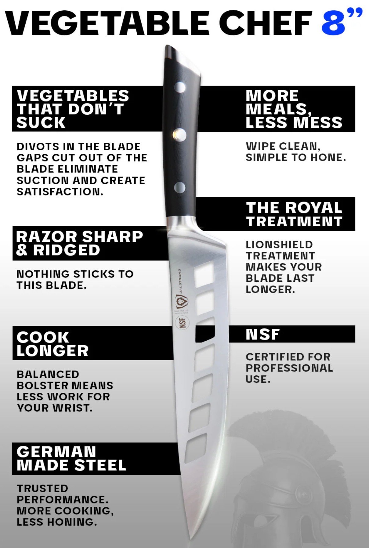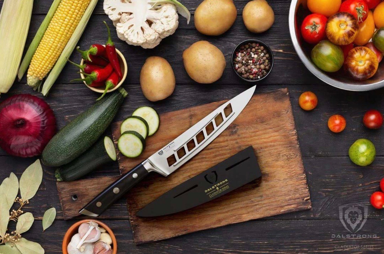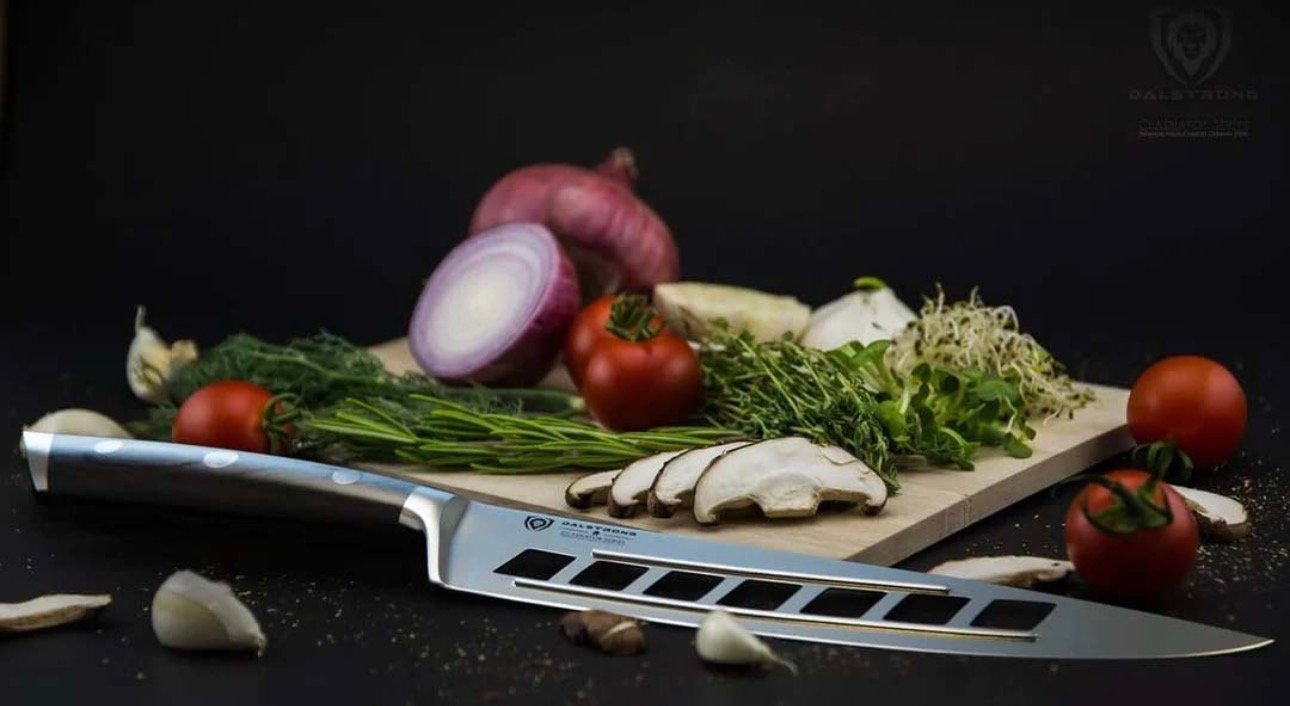 ‘The Dalstrong Gladiator Series Vegetable Knife easily glides through wet and dry vegetables, with efficiency, precision, and speed. The ‘Deflector’ is an extremely versatile knife with unmatched functionality that is a must-have in any serious cooks’ kitchen. Perfect for all chefs looking to save time in the kitchen.