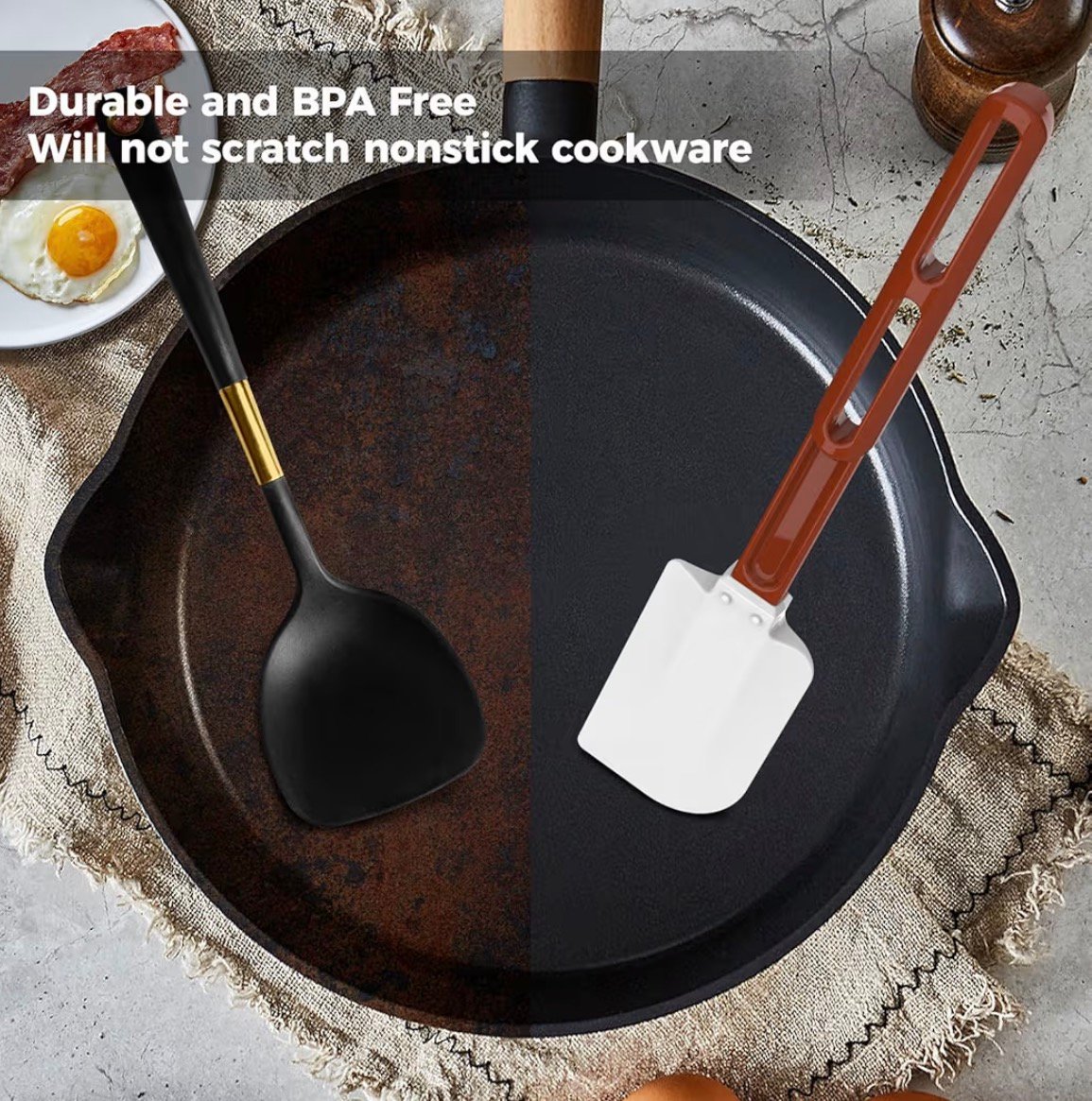 - 【Kitchen Essentials】 It’s very suitable for use with non-stick cookware and not will scratch the cookware. This scraper spoon can stir the ingredients evenly. Easy to clean, no worries of crevices for food to stuck in, commercial dishwasher safe. Easy to store, unique contoured handle provides comfortable grip and convenient suspension.