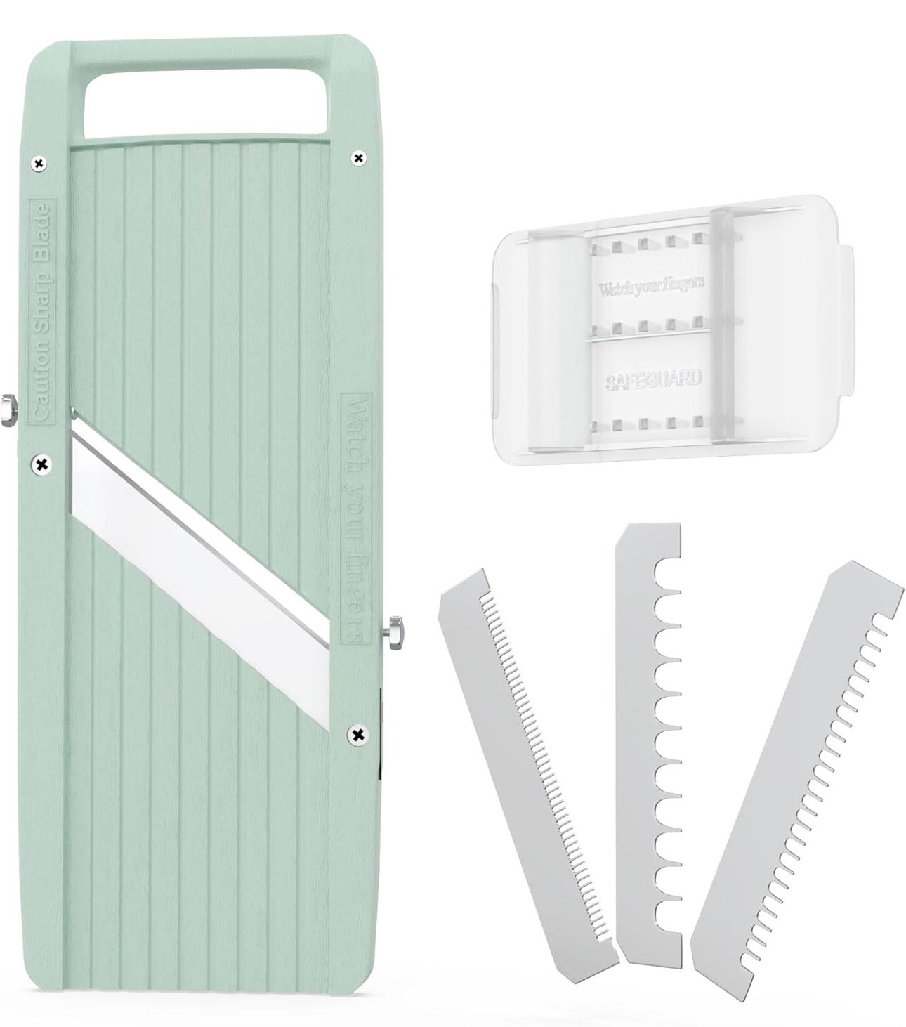 - User Friendly and Safe: Say goodbye to accidental cuts and nasty injuries with this durable and safe handheld mandoline! The special protective design keeps your fingers and palm away from the sharp edges of the blades, for a user-friendly slicing experience.