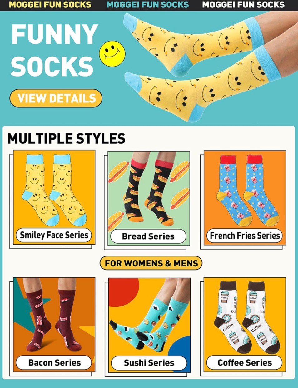 Accessories, ApparelMOGGEI Funny Socks for Men Women Fun Cozy Crazy Novelty Fashion Breathable Printed Cotton Boot Socks