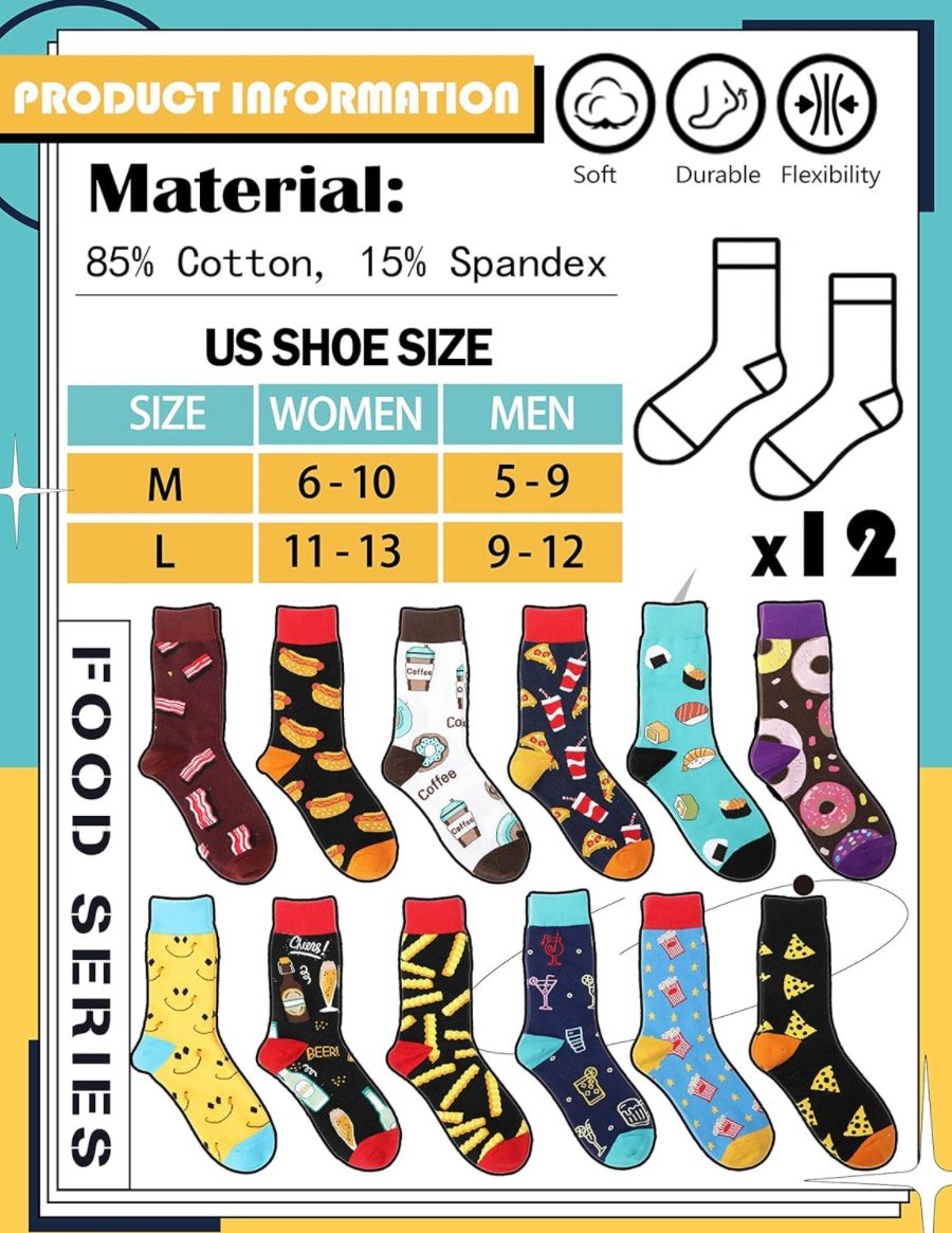 - 【Funny Pattern & Wide Application】Colorful socks to brighten your mood every moment! By designing with unique novelty pattern, these crazy fun socks are stylish to make you stand out from the crowd. These fun socks can be used as dress socks, boot socks, home socks, sport socks, ect.
