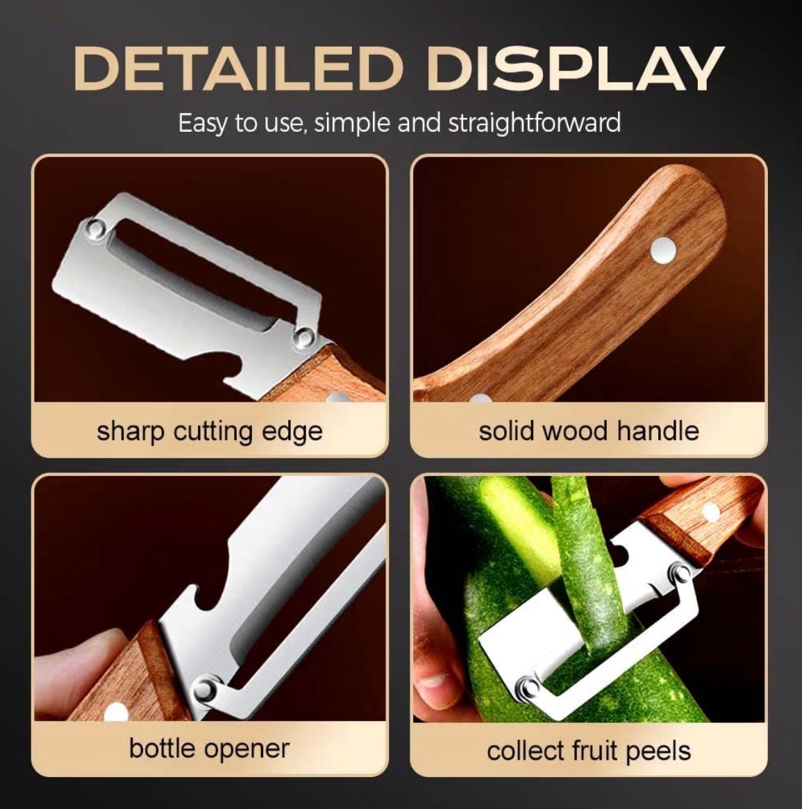 - 【Multi-Functional 2-in-1 Tool】Combining the features of a vegetable peeler and a bottle opener, this multi-functional kitchen tool is great for home, travel, camping, and pantry use. Its built-in bottle opener adds versatility, enhancing convenience for everyday activities.