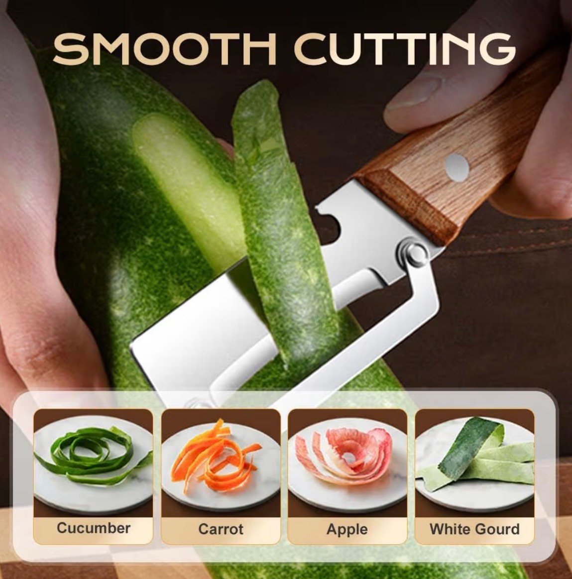 - 【Ergonomic Wooden Handle】Equipped with a solid wooden handle, the vegetable peeler provides a comfortable, non-slip grip. This ergonomic design reduces hand fatigue during prolonged use, making it perfect for preparing large batches of fruits and vegetables at home.