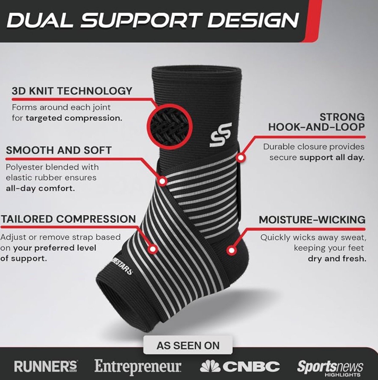 - ✅ Super-Premium Quality & Long-Lasting Comfort: Made from high-quality, breathable fabric that quickly absorbs sweat to keep your feet dry and comfortable all day. Designed for durability and long-term use, this ankle support offers reliable performance over time. Design includes an adjustable strap for a secure and customizable fit—ideal for sprained ankles, achilles tendon support, or injury recovery.