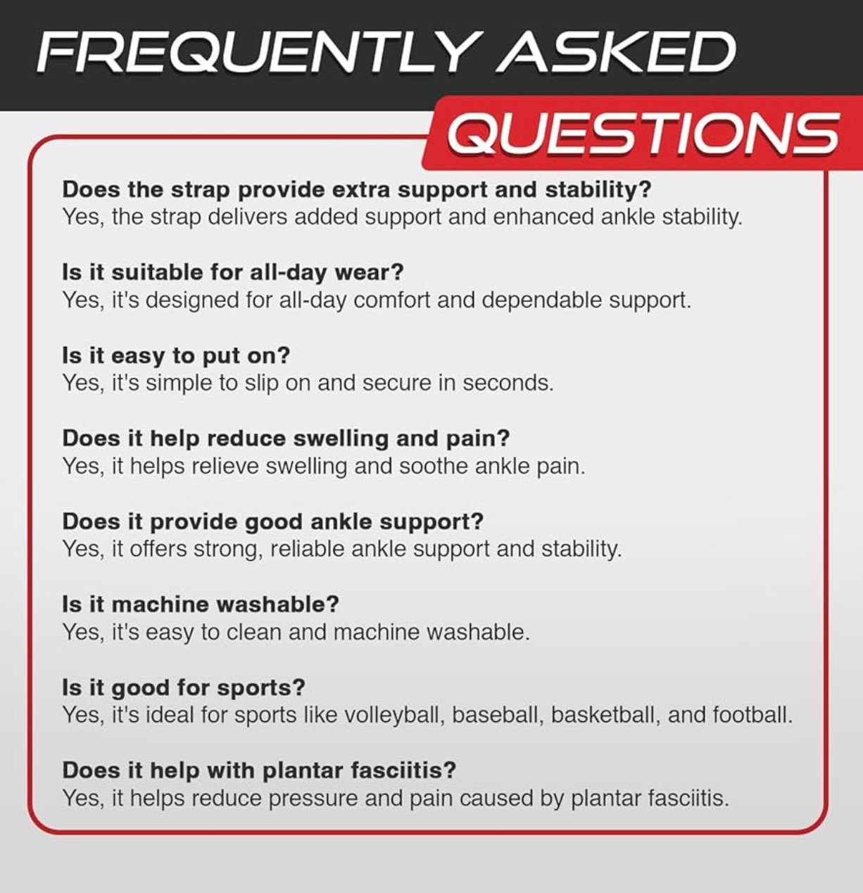 - ✅ Complimentary support strap: This ankle support for women and men features an adjustable strap for customized compression, stabilizing and preventing foot injuries without restricting motion. This foot brace for plantar fasciitis keeps a snug fit during daily activities and active sports.